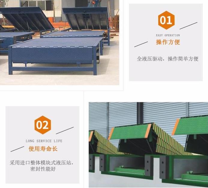 9、電動(dòng)液壓、操作簡(jiǎn)單、高度可任意調(diào)節(jié),調(diào)節(jié)范圍大,提高裝卸效率,節(jié)省人力。讓您的工作更加方便、省力及節(jié)約成本。